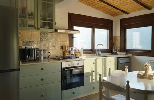 Inside we offer you a living room with fireplace and chaise longue with access to the porch through large glass doors. Thanks to them you will have a panoramic view of the Sierra de Líbar and the valley of the Guadiaro River. The kitchen, also overlooking and open to the living room, is fully equipped with everything you need to cook comfortably, includes microwave, nespresso coffee maker, kettle and dishwasher.