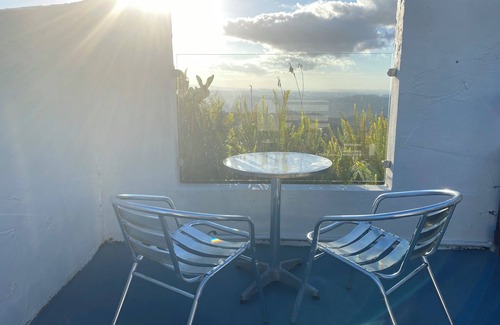 Unfortunately the apartment, the roof terrace and the surroundings are NOT child proof so, please, NO children under sixteen are allowed. It is ideal for a couple hideaway or for a small family adventure. It has a fully equipped kitchenette (separate from the bedroom), with a wooden dinning table to enjoy your meals, card games and conversations overlooking the vegetable garden, the mountains and the ocean. A fantastic private terrace above the apartment is ideal for BBQ's, watching spectacular sunsets, star gazing or as your own solarium. Our small, but wonderful family pool and spacious sun terrace is available for our guests.
