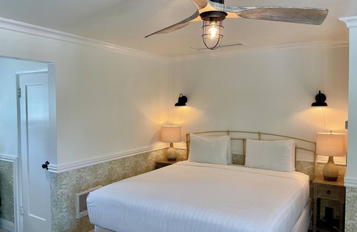 Experience the spacious Evergreen Suite, located on the second floor and featuring a King-size bed and a comfortable sofa sleeper. Enjoy panoramic ocean views through framed windows while listening to the soothing sounds of waves crashing on the beach.