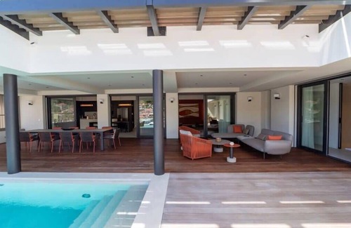 Air conditioning, WIFI, Sofa, high definition TV. Large outside table for 10 people.