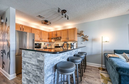 You can't go wrong with choosing “Opa’s Ocean Oasis” for a relaxing getaway with family and friends. Our newly renovated, beautifully decorated condo is designed and furnished with your comforts and needs in mind. It’s 1200 square feet of relaxing, inviting, and memory making perfection. There are two bedrooms, two full bathrooms, kitchen, dining area and bar-height counter with four comfortable stools. A spacious living room, laundry room, and a covered balcony overlooking the beach, pools and courtyard restaurant. We have three ROKU TVs so you can sign into your streaming channels. Two of those TV’s also have cable so everyone can find what they like when they’re not swimming, sunning, surfing or fishing.