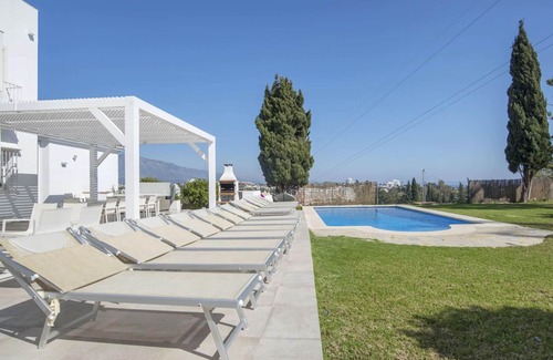 Welcome to a beautifully refurbished villa where timeless elegance meets modern comfort. Nestled on the western edge of Marbella, this exquisite residence offers a serene escape with a breathtaking garden, a spacious sun-drenched patio, and a refined yet inviting interior. Thoughtfully designed for up to 15 guests, this stunning home features a private hot tub, an outdoor dining area with a built-in barbecue, and a host of upscale amenities, ensuring the ultimate indulgence under the golden sun of the Costa del Sol.