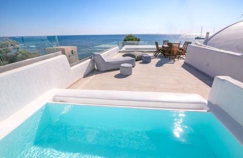 Elite Santorini Villa | Aegean Melody Suites | 3 Bedroom | Outdoor Jacuzzi | is located in Exomytis. Elite Santorini Villa | Aegean Melody Suites | 3 Bedroom | Outdoor Jacuzzi | provides accommodation, featuring Bedding/Linens, Child Friendly, TV, among other amenities. This Villa features Bedding/Linens, Child Friendly, TV, to make your stay a comfortable one.