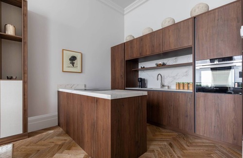 South Kensington epitomises the cool, elegant and cultured elements of the UK capital, with some gorgeous London plane trees thrown in for a splash of greenery. Among this refinement sits Elvaston Place III, tucked away on a leafy street with an incredibly central location and that super-desirable SW7 postcode. This one-bedroomed apartment welcomes up to two guests, making it the perfect choice for couples searching for a vibrant city break. Inside, contemporary interiors complement original features, lending the home a warm, cosy feeling that makes you feel instantly at home as soon as you step through the door. The home boasts bright and airy interiors with large traditional sash windows allowing the sunlight to flood into the living area. From the statement black marble fireplace and TV surround to the bespoke lamps in the bedroom, this is a home full of unique touches set against a modernist background of neutral tones and metallic accents. Close to both South Kensington and Gloucester Road tube stations, it's a short ride into the West End for luxury shopping in Bond Street or a night out at Covent Garden opera. Closer to home, you're just a quick stroll away from Exhibition Road with its trendy cafés and brasseries.