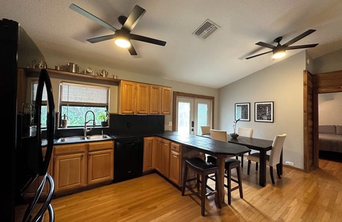This extraordinary property offers the perfect blend of rustic charm and modern luxury. With its four inviting bedrooms and two full baths, it comfortably accommodates up to 12 guests, making it ideal for memorable parties and large gatherings.
