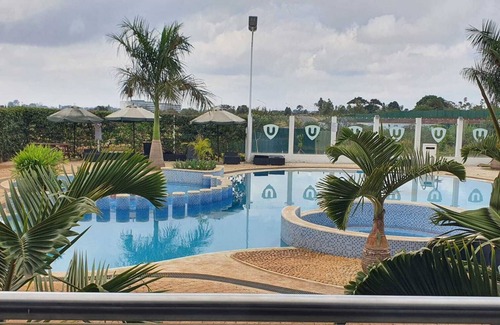 Relax, refresh, recharge in this enchanting apartment getaway that awaits you in Tatu City. With 2 bedrooms featuring a queen bed and two twin beds, along with 2 bathrooms equipped with showers, this beautiful space is perfect for guests looking for a wonderful stay. Enjoy the convenience of amenities like free secure parking, washing machine, ironbox and WiFi during your visit. Relax on the balcony with a book from our shelf or chill with netflix. Take a walk or jog around the green tatu city or enjoy a refreshing dip in the pool. Have a meal in one of the three restaurants or order in through the apps from countless options. You can also cook for yourself in our furnished kitchen.