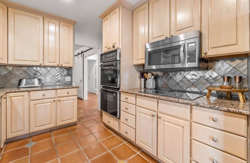 Need to stay in touch with the office or school? Virtual commuters and students alike will appreciate the office area that overlooks the pool with desk, super-fast Wi-Fi, and a wireless printer. Families with young children can travel light as there is a Pack ‘n Play, highchair, baby monitor, small stroller, and tyke-sized table with chairs conveniently provided.