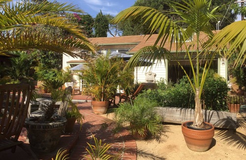 Custom built Vacation Guest House in Old Encinitas located west of I-5 a few blocks from famous beaches, restaurants, train station, shopping, library and everything Downtown 101 has to offer. This 1 1/2 bedroom 1 bath home sits on a large lot in the coveted Encinitas Highlands area in a tropical setting with multiple water features, courtyards and gardens to enjoy. Also includes pool, hot tub, outdoor shower, cabana, bbq, firepit, organic vegetable garden, washer/dryer, refrigerator, microwave, oven, internet/wifi and cable/tv. The gated property has a separate entrance and is ideal for 1-2 people.