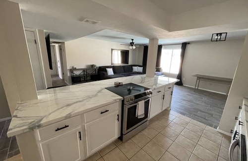 Welcome to The Cottonwood House! You will be close to everything when you stay at this centrally-located home. This home is walking distance to the restaurants, bars, and shopping on main street McCulloch and less than a 10 minute drive to the launch ramp at site six and London bridge. RV parking and hookups along side of home and open concept living area! Home has a game room with pool table and bar, as well as a barbecue out back to grill by the heatable pool (upon request only).