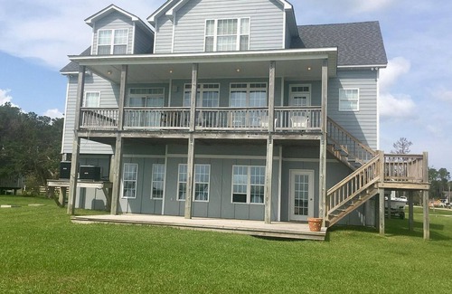 Bring the family and enjoy all Down East and Beaufort has to offer! Waterfront spacious home for making memories to last a lifetime. Hop on the ferry and explore Cape Lookout National Seashore, the ponies of Shackleford Banks and the great bounties of the Sound and Atlantic Ocean. Enjoy restaurants and sight seeing on Harker's Island and downtown Beaufort. Plenty of room for entertaining both inside and out. Ground floor game room for fun inside, kayaks on site. 1 King, 2 Queens and sleeper sofa. Sorry no pets, linens provided.