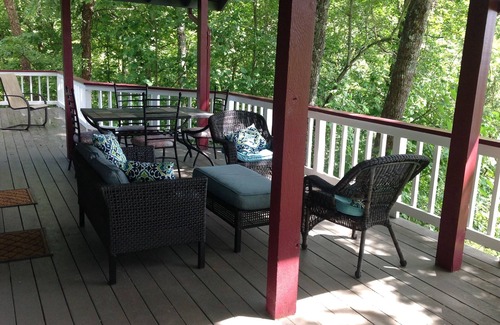 Morning, noon or night you will enjoy the phenomenal view from the multi-tiered decks of this beautiful mountain retreat. Sitting on the upper deck gives the feeling of being in an treehouse. Our 2500 square foot house features both open and covered decks for outdoor fun. There are dining tables, porch chairs and a gas grill.