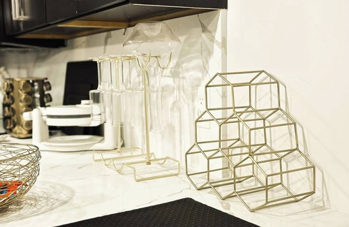 Enjoy luxury and comfort in our stylish 1-bedroom, 1-bath high-rise unit in the heart of Midtown. With a chic black and gold theme, this inviting space is perfect for your stay.