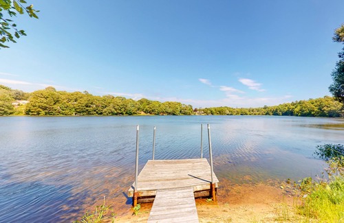 Marvel at the endless charm that awaits at this waterfront home. With so much to do and see in this area, you'll never be bored! Take the kayaks out to the pond and enjoy making memories that'll last a lifetime. Gather around the firepit to tell ghost stories, and roast marshmallows as the stars come out to dot the sky. Enjoy your nights dining alfresco on the deck, relaxing in the two-person hot tub, and playing night games in the huge yard.