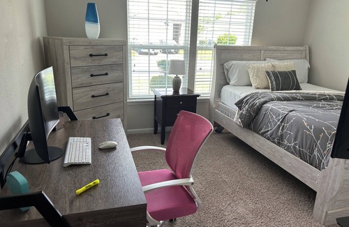 These two bedrooms are a part of our 4 bedroom house in Jacksonville. You’ll share common areas with other guests. It offers a perfect blend of comfort and quick transit convenience for your stay. As you step inside, you'll be greeted with a beautiful furnished living space and bedroom, with a fully equipped kitchen, and a private bathroom.
