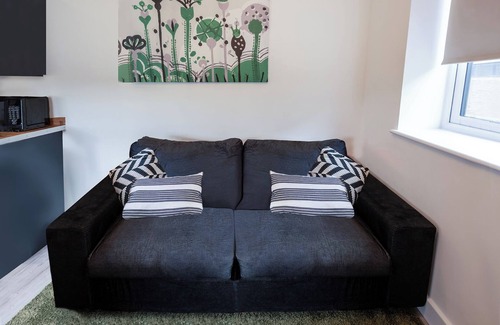 Experience comfort and style in this modern 1-bedroom, 1-bathroom apartment at The Printworks, a historic site on Bingley Road, Bradford, once home to Hallmark Cards. Perfect for couples, solo travellers, business guests, or small groups of up to four, this well-designed space offers everything you need for a relaxing stay.