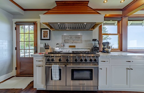 At home, play oceanfront pickleball on the newly-added private court, and yard games on the rolling lawn in the pure sea air. When you find downtime, gather on the large decks for a glass of wine or local beer, and fire up the gas grill for a summer cookout. Keep your eyes open for whales, bald eagles, hawks, and of course, sea lions! Sunsets are epic at the Pearl. In the evenings, enjoy stargazing and s’mores around the outdoor firepit while the waves crash below. For more formal meals, the fabulous full kitchen boasts a double oven, extra-large gas range, stand mixer, stainless steel appliances, espresso machine, high-end drip coffee maker, and much more for every chef’s culinary creations. You’ll love heated bathroom floors, custom Craftsman interiors, large luxury stone showers, and a soaking tub with an ocean view. Four large bedrooms each have comfortable beds with high-end mattresses.