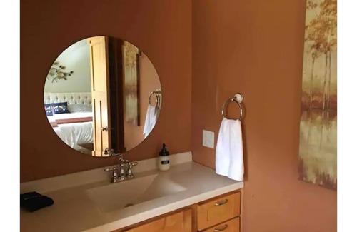 Enjoy the natural world around you on our 16 acre sustainable farm where you can walkabout and visit our sheep, poultry, and summertime pigs. Explore the vegetable and flower gardens and our berry patch. Eat foods grown from the farm, play games around the table, or simply curl up with a good book. Relax by a campfire while taking a moment to appreciate the beauty of the night sky. This is a space where friends and family gather to slow down and rejuvenate in our modern simply styled farmhouse.