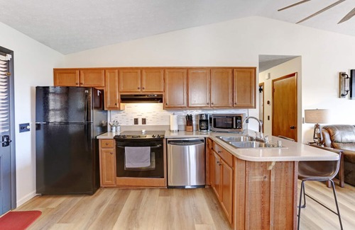 Our recently renovated cabin provides a well equipped kitchen with electric stove, 12 cup coffee maker, pots and pans, cutlery, wine glasses, beer mugs, strainer, toaster and a blender and many other kitchen essentials. The outdoor Gorilla Pellet Grill offers easy grilling and our complimentary coffee bar includes French Market ground coffee, stevia packets and creamer pods. The dining room table sits 4 people, but can easily extend to comfortably sit 6-7 people, there are additional dining chairs located on the lower level.