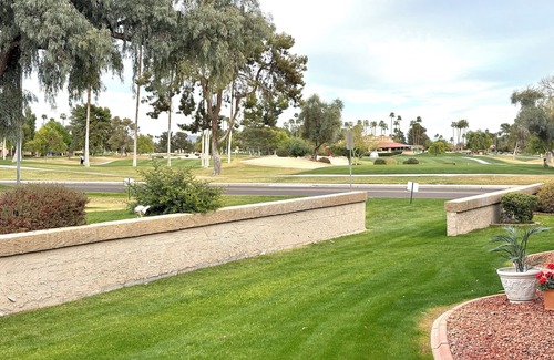 Escape to sunny Phoenix! 4 week min. Stay. Relax in our 2 bed 2 bath retreat in Westbrook Village, a patrolled country club community (40+ age restriction, no kids <18) Enjoy a fully furnished home with a garage, driveway, patio, gas grill, fire pit, laundry, and smart TVs. Access 2 rec centers, golf, pools, fitness, tennis, pickleball, and more! Near shopping, dining, Westgate Ent Ctr, boating, hiking, NCAA, NFL and MLB spring training. $25 facility fee (per person) for stays over 29 days.