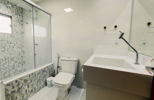 Nestled in Camaçari, this 1-bedroom, 1-bathroom vacation home brings it all within your reach. Fans of nature and the outdoors will love being 12 minutes by foot from Arembepe Beach and 5 minutes by car from Tamar Project. You'll easily make the 21-minute drive to Guarajuba Beach or the 21-minute drive to Barra do Jacuipe Beach.