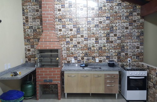 The house and the furniture are new, 3 bedrooms, sleeps 10 in beds, private kitchen complete with duplex refrigerator, microwave, blender, mixer, stove and gas, water cooler, and all utensils such as dishes, cutlery, glasses, pans , baking sheets, etc. All new !!! House newly opened (December / 2018), House with Internet Broadband WI-FI Fiber optic, room with TV 40 "SMART, DVD, large outdoor area with SWIMMING POOL Size 5.00 x 3.00 Mtrs and 1.40 mtrs depth with cascade, hydro massage and night lighting, outdoor area with barbecue, wooden table with 10 chairs, 3 bathrooms with box, all environments with ceiling fans, drapes in all comodos, garage for 3 cars covered, comfort and tranquility only 2 min. From Thermas dos Laranjais. Cleaning fee (entrance and exit) already included !! We accept animals!