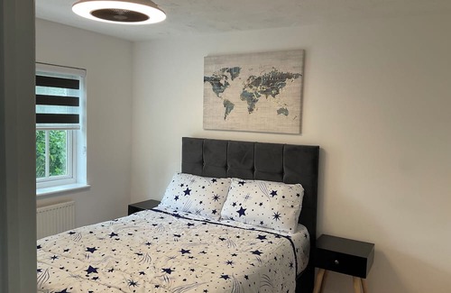 Exclusive 3 bed end terrace house, Free WIFI, Garden, Free Parking, 5 mins from Lakeside Shopping Mall/Train Station. The holiday home consists of 3 separate bedrooms (one ensuite), 2.5 bathrooms with hair dryer, towels and bed linen.
