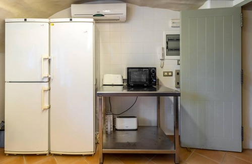 The dining room has a long wooden table and chairs and a door which leads to the delightful porch outside which has another long table with chairs and outdoor sofas where guests can eat or relax and enjoy the good weather. The kitchen, spacious and semi-professional, is equipped with all the necessary appliances and utensils you will need. It has a door leading to the garden outside where there is a barbecue next to the house.