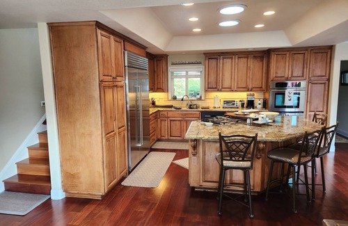The home has an open space design, upscale but still very homey. Master bathroom has a walk-in shower. The master bedroom #1 has a very comfortable queen BeautyRest pillow top bed. Bedroom #2 is new queen memory foam bed, completely redesigned with original hardwood oak flooring. A queen bed is in Bedroom #3.