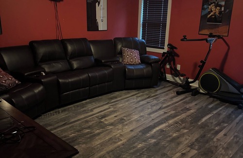 Get ready to relax in this 3-bedroom house in Lillington. The soothing ambiance of the 3 queen beds will enchant guests, providing a serene retreat during their stay. With amenities like WiFi, heating, AC, and a washing machine, guests can unwind and enjoy their time here. You can relax on the screened in deck, grill on the outdoor kitchen, or watch a movie in the entertainment room. You're sure to make fantastic memories with a stay at our place.