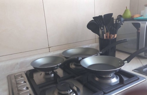 The kitchen is equipped with a stovetop and a refrigerator, as well as a coffee maker, a microwave, and cookware. Connect to the WiFi, or get cozy in front of the TV. And you can even travel light because you'll have a washing machine. Other amenities at this 2-bedroom, 1-bathroom rental include bed sheets, a desk, and a dining table.