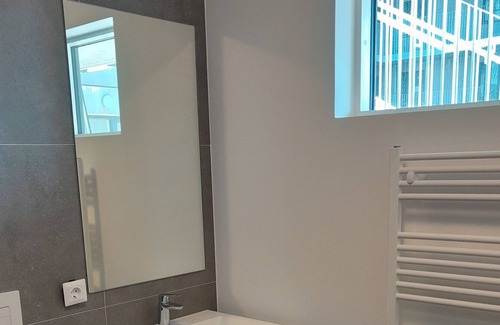 46m² ground floor apartment with kitchen, bathroom with washing machine/dryer combo , 1 bedroom with king size bed and sleeping curtains. Full kitchen with refrigerator/freezer, coffeee machine, boiler and oven and stove.