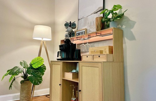 -Coffee bar with Kcups, creamer, coffee syrups, tea and hot chocolate