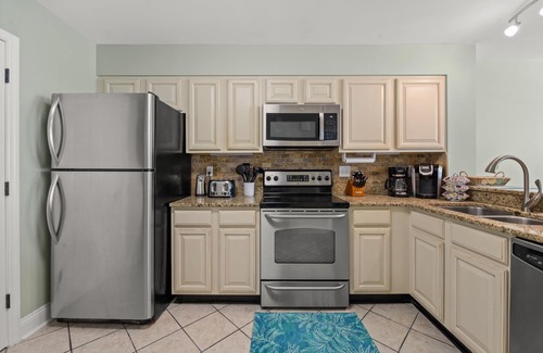 We maintain an impeccably clean condo, I demand it! No unsatisfied customers (read our reviews). Were a quiet family beach! Celebrating our 25th year! Thank you for making 2025 our best year ever. New in 2024 Newly painted inside, new flooring was added to all rooms. We added 2nd king bedroom suite. We also added a new ceramic tiled walk-in shower in both baths. We replaced the kitchen and added a 42'' flat panel TV in the living room and a 50'' LCD TV's in all the bedrooms. All new Wellborne cabinets and granite countertops with all new stainless-steel appliances. Everything you need is there. We have high speed DSL. We remodeled the 2nd bath to include new sheetrock, vanity with granite and new tiled shower. Book now and get the week you want, not what's left! We also have available additional items for rent to make your vacation more enjoyable. We can even supply towels and linens for just $100 if needed. We also offer limited covered parking to keep your vehicle out of the hot summer sun.