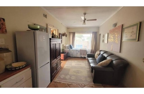 Free standing unit , fully equipped and fully furnished with own entrance , own garden with braai area and own parking. Consist of bedroom with double bed and lounge with extra single bed , kitchen and bathroom with access from bedroom and lounge.Suitable for single or married couple long term or 2 singles or family of 3 short term.