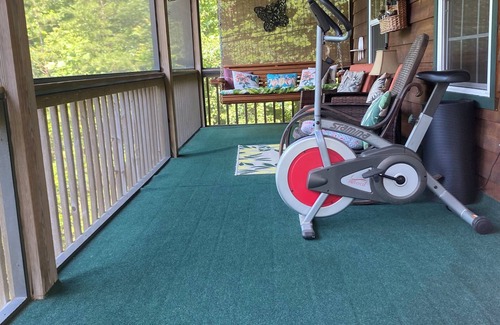 Brand new HVAC system! Quiet, cozy cabin - great for relaxing getaways or family fun with a huge deck and hot tub! Enjoy a hot cup of coffee or tea while watching the sunrise from the screen-enclosed deck, free from any bugs or gnats. Perhaps a glass of wine by the hot tub is more your style, where you can keep an eye out for roaming deer. This cozy cabin is a 3 bedroom, 2.5 bath, 3-story log cabin with amenities including, but not limited to, fast Wi-Fi, streaming services like Netflix, board games, pool table, wood fireplace, and free parking. Our side outdoor porch is the perfect place for a barbeque and our outdoor deck offers prime wildlife viewing, a morning cup of coffee and a good book, or an evening glass of wine. The full kitchen includes all modern appliances (new stainless steel range and fridge!) and fully stocked with everything needed for preparing family meals.