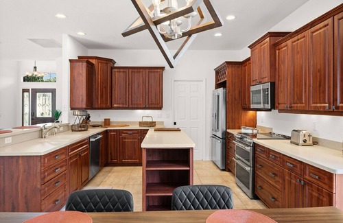 This newly decorated 3 - bedroom, 2 bathroom house with kitchen equipped with new appliances. The kitchen overseas a large great room with high ceilings and large sliding doors leading to the pool. Every bedroom in the home has walk-in closets, while the master and guest bedroom have direct access leading to a stunning enclosed pool area. It has everything you need to enjoy your stay. Book your stay today and enjoy!