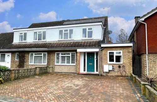 Our spacious 4BR in Bagshot is perfect for families and groups! The open plan kitchen, dining provides ample space for everyone to gather. The conservatory doubles as a play area for the kids, and there's even a small double bedroom with en-suite downstairs. Upstairs you'll find a Super king-size bed , King size bed room, 1 Small double bed and a family bathroom. With a dedicated workspace, high-speed wifi, and Smart TVs with Netflix included, you'll have everything you need to work and play