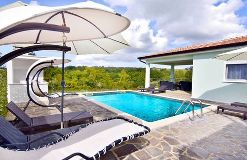 House can accommodate 8 guests. Beds are situated in 3 sleeping rooms, but also in the living room, within 121m2. Guests can use a private terrace to enjoy the warm summer evenings. For full enjoyment and relaxation there is a private barbecue for this accommodation guests only. During stay, there is a private pool for relaxation and pleasure.