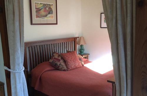 Located at 85 Nichols St. in Friday Harbor. Our bigger of 2 units, suite #1, one is spacious and comfortable, 850 Sq. Ft., of in town lodging .Full kitchen, bath, outside deck with barbecue. Family friendly, sleeps up to 6 with a queen size semi-private bedroom with adjoining double bedroom, foldout double futon and large window seats create a very cozy space. Heavy cloth curtains seperate bedrooms, no door to bedroom. Cable TV, WiFi and Antique & contemporary furnishings and local artwork give Nichols Street Suites a feeling of home...Check it Out... We're within walking distance to all of downtown, waterfront and local amenities...Off street parking available. Nichols Street Suites is a Non Smoking Facility. Thanks for your inquiry...Summer Rates apply May 15 to Oct. 15. Winter rates, Oct. 15 to May 15