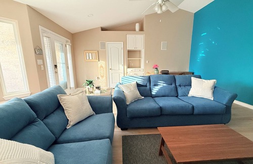 -Bright and airy living room with space to gather, play games, or watch a movie
