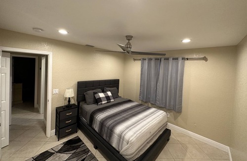Experience sunny South Florida in our freshly renovated home! With 2 bedrooms—one king, one queen—and a day bed with twin mattresses in the living room, it comfortably sleeps 6. Enjoy fast Wi-Fi and a 55-inch TV for entertainment.