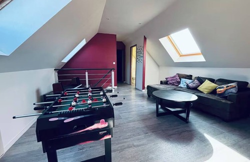 Nestled in Beuzeville, this 4-bedroom, 3-bathroom vacation home brings it all within your reach. Fans of nature and the outdoors will love being 16 minutes by car from Seine and 32 minutes from Baie de la Seine. If you'd like to explore the area, you can make the 16-minute drive to Old Harbor of Honfleur or the 12-minute drive to Honfleur Normandy Outlet.