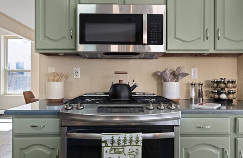 The well-appointed kitchen has everything you need to whip up yummy meals and snacks for your loved ones. Stocked with cookware, utensils, appliances, local coffee, teas, and spices, our kitchen has everything you need to cook up a storm, with cleanup being a breeze.