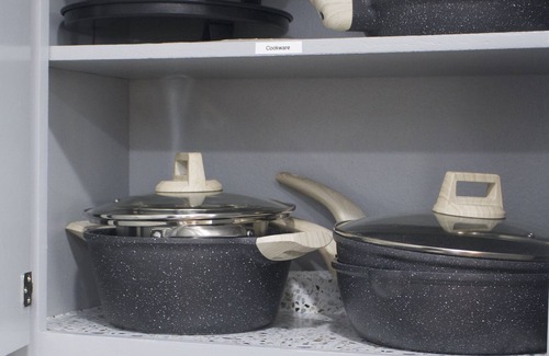 Fully Equipped Kitchen: Prepare delicious meals in the fully equipped kitchen with serveware for 6 and all the utensils you need. The kitchen is also equipped with a keurig coffee maker, filtered water dispenser, and a 3-in-1 airfryer, microwave, and conventional oven.