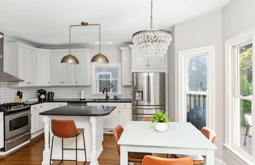 This is a wonderful home located in one of Charlotte's best neighborhoods. It offers high ceilings, tons of sunlight, totally remodeled kitchen and bathrooms. The backyard has a nice patio/deck with plenty of seating and a barbeque grill. The home has 4 bedrooms on the main floor, with additional 5th and 6th bedrooms upstairs - each with their own ensuite bathrooms . The home has 7 queen beds and can easily accommodate 10-12 people. There are 4 full bathrooms in the home. The entire home has been recently remodeled and super clean. You'll have access to the entire home. There is a 2-3 car driveway and plenty of free street parking in front of the home if needed.