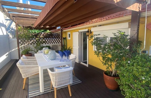 Behind the kitchen, to the west, you can enjoy the sunset on the terrace full of plants while having a barbecue.