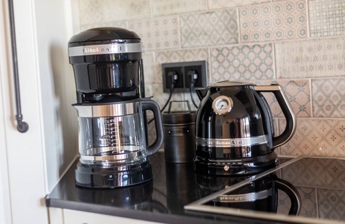 Prepare a home-cooked meal in the kitchen, complete with an oven, a stovetop, and a refrigerator, as well as a coffee maker, a microwave, and a toaster. And you won't have to pack extra clothes, because you'll have a washer and dryer, too.