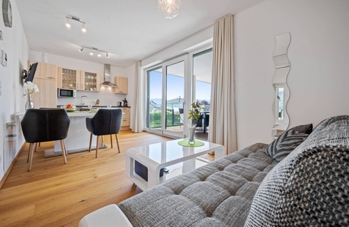 This bright and modern holiday apartment welcomes you with a pleasant ambience, in which tasteful furnishings and plenty of natural light create a real feel-good atmosphere. Floor-to-ceiling windows open up an enchanting view of Lake Wörthersee. Look forward to harmonious meals at the inviting dining table and make yourself comfortable on the sofa for a film evening after an active day in the great outdoors.