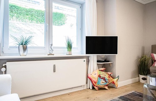 Guests will appreciate the bright bathroom with a shower, as well as the inviting living area with a TV for entertainment. High-speed internet access via WLAN ensures guests stay connected during their stay. The apartment is heated for comfort and equipped with smoke detectors for safety. This vacation haven combines functional living with essential amenities, making it an ideal choice for an enjoyable getaway.
