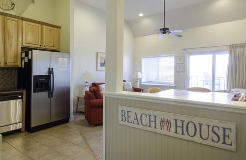 "The Starboard" is a 1 bedroom, 1 bath top floor condo with spacious, high vaulted ceilings. The condo faces north with superb coastline views of the dunes and ocean. Relax on the oceanside balcony, enjoying a dip in the private hot tub while star-gazing after a long day at the beach. Enjoy a tile walk-in shower and granite vanity top. The Starboard has 1 king bedroom and a queen sleeper sofa, accommodating 4 guests total. New 55" Curved UHD Smart TV, large bedroom TV, and plush carpeting throughout. The kitchen is fully furnished and has a traditional Keurig coffee maker for coffee lovers. Private hot tub, beds made, washer/dryer in condo, Smart TV, WiFi.